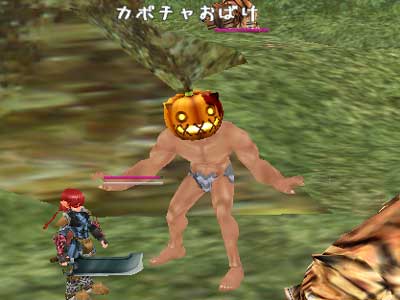 その名も「カボチャおばけ」。深夜にレクスールヒルズ下流域に生えているかぼちゃを全滅させるとpopする新mobです。お化けです。