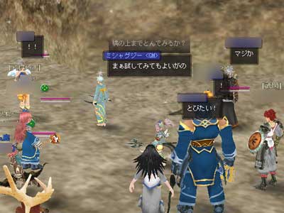 人が集まってきたところで(メンテ直前なのに!)ミシャ様から、ヌブール村からビスクまで散歩でもどうか、との提案が。その場にいたみんなでぞろぞろ付いて行く事になりました。最近のミシャ様はちょっぴり過激ですから、一部から不安の声が上がったりしていました…。