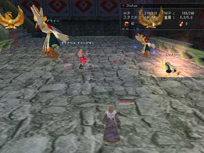 repop3時間と聞いていましたが、幸運にもすぐ遭遇する事ができました。場所はwarでいうところの坑道上。PCにはノンアクティブ、mobにはアクティブということで、しばらくのんびりと記念撮影したり、バルドスをなぎ倒していくのを眺めていましたが、飽きたのでとりあえず襲い掛かってみました。