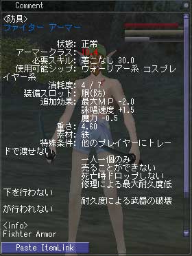 ただでさえ長い神秘魔法のディレイが、フル装備しているとさらに伸びちゃうんだよぉぉぉ。シップ鎧以外の防具なんて持ってないぜ!